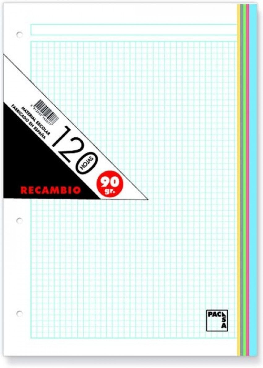 RECAMBIO A4 120H 4 TALADROS 90G CUAD.5X5 + GRECA DE 4 COLORESDisponibilidad: Hay existencias